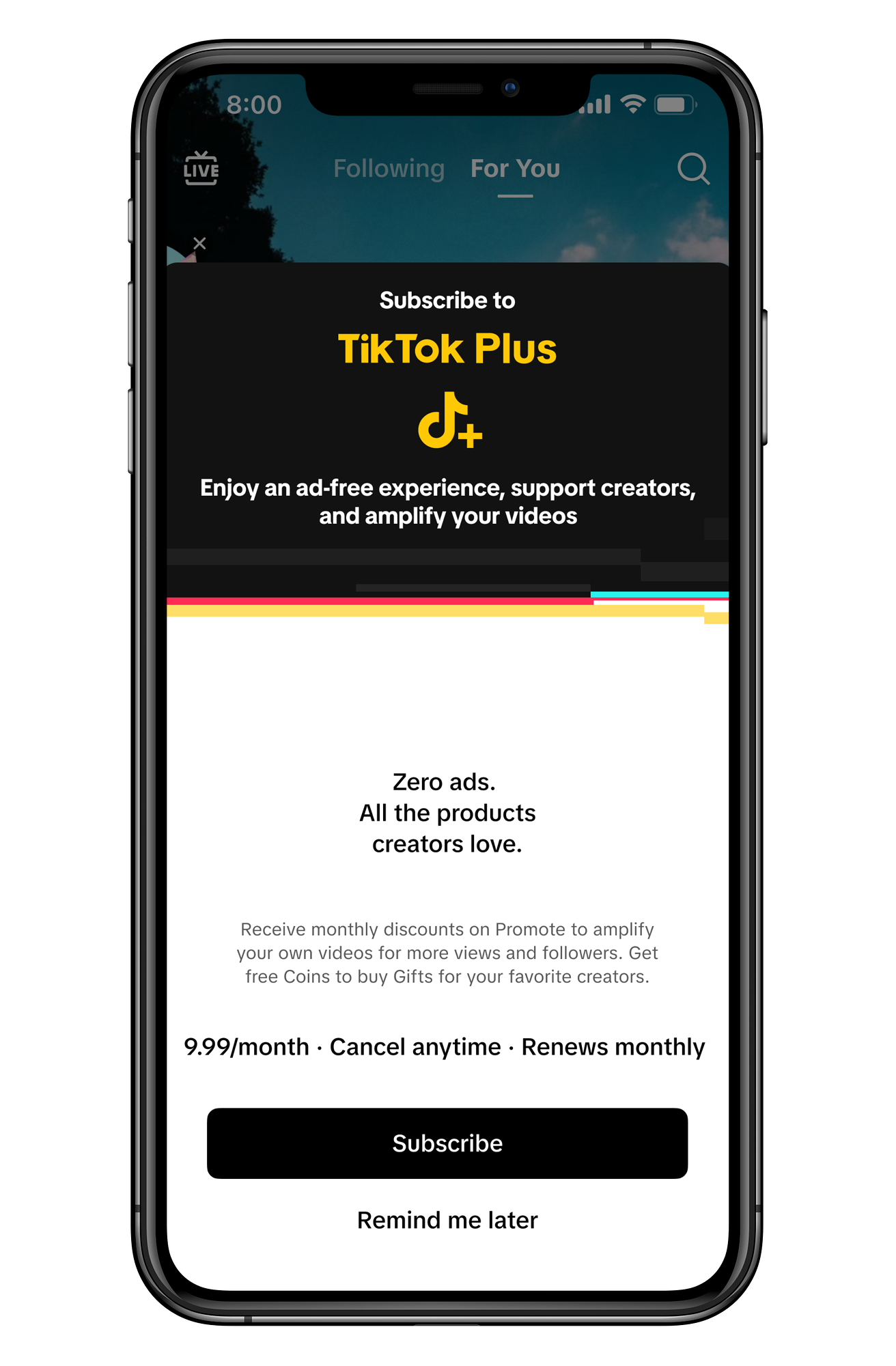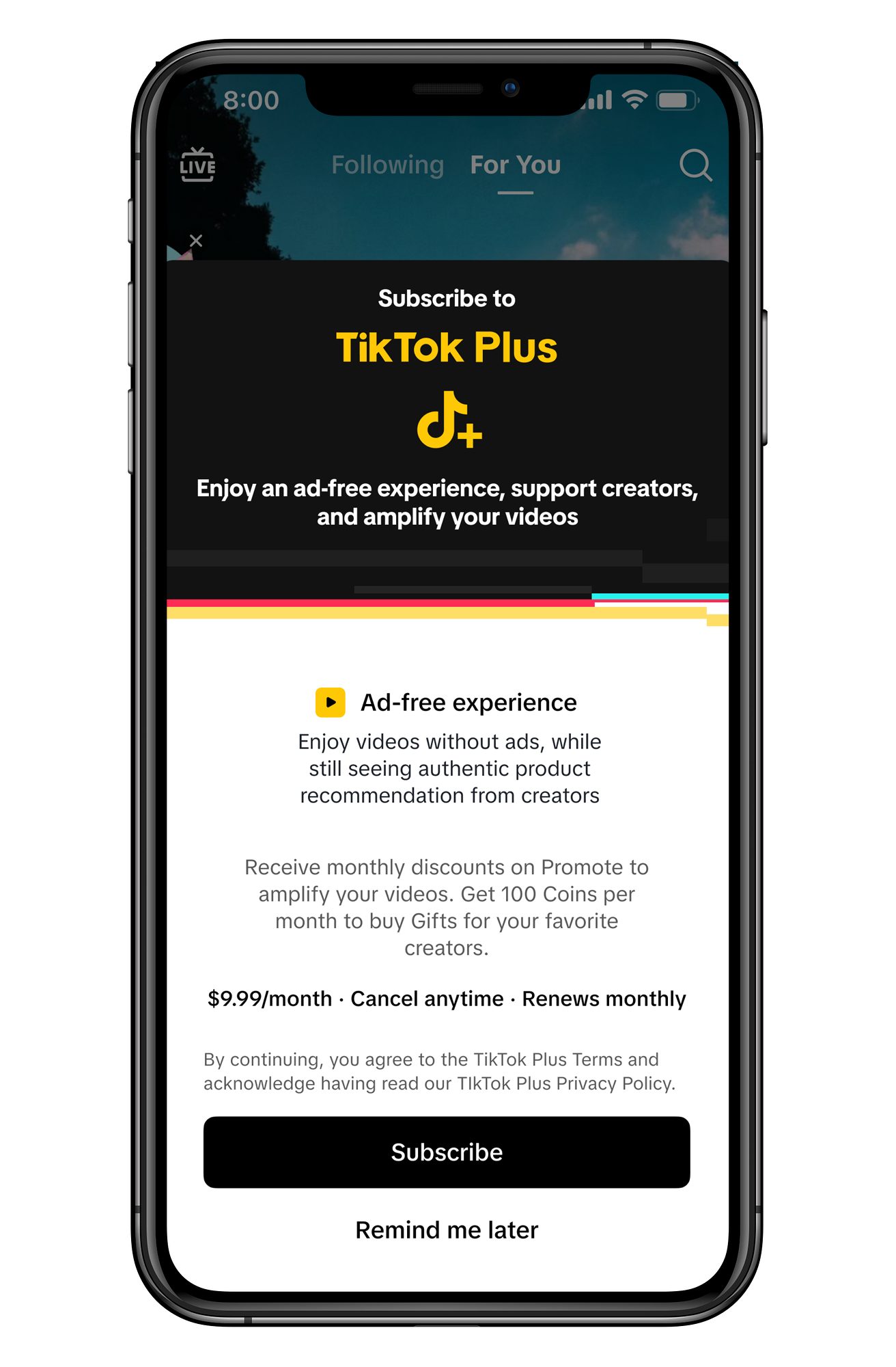 TikTok Plus is an audience-facing, platform-wide monthly subscription product for a premium ad-free experience and additional user benefits